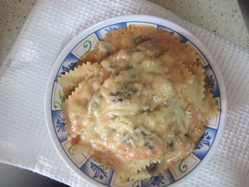 רביולי גבינות ברוטב שמנת-עגבניות ופטריות