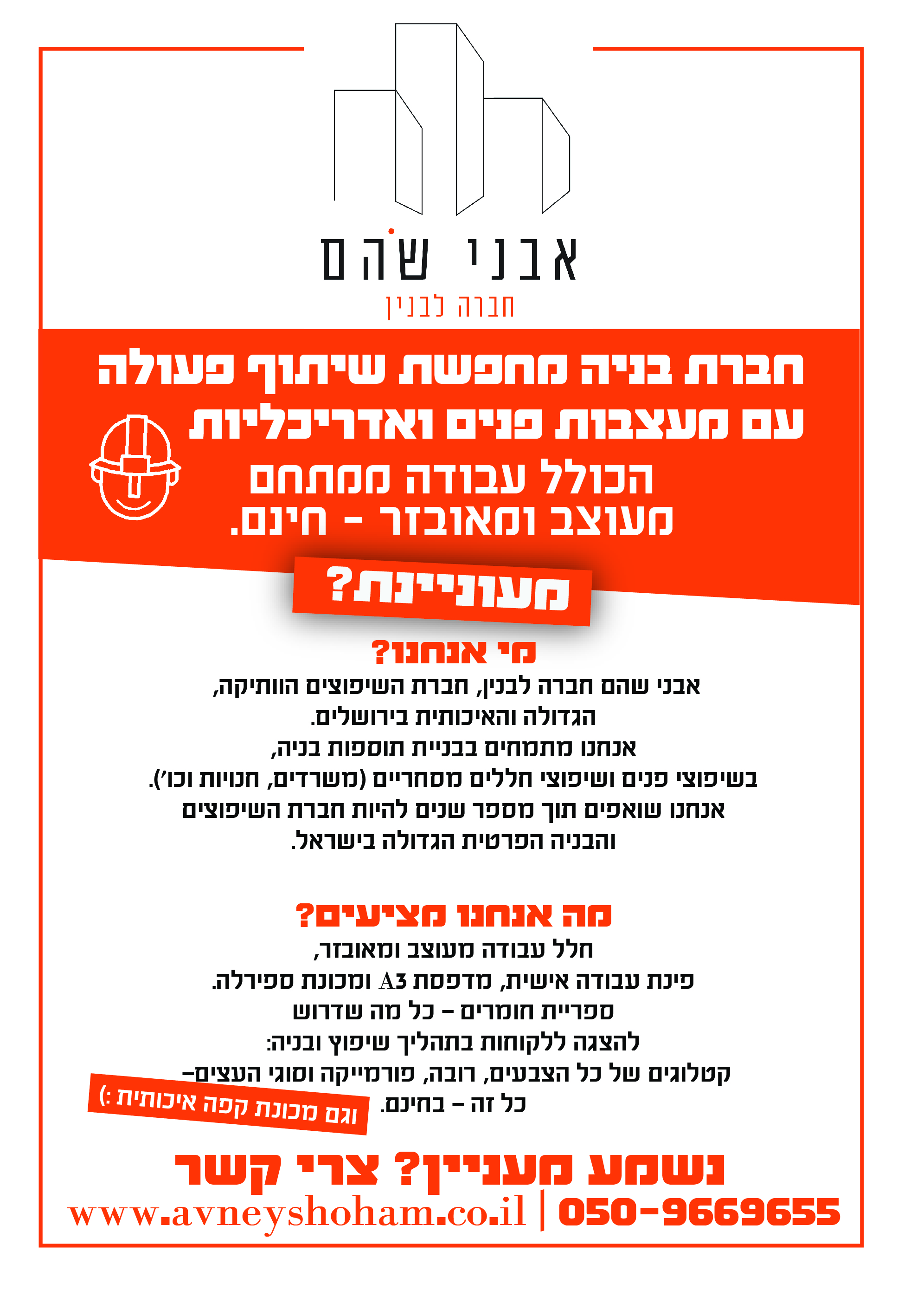 יש למלא שאלון בדף האינטרנט שלנו : https://www.avneyshoham.co.il/blank-6