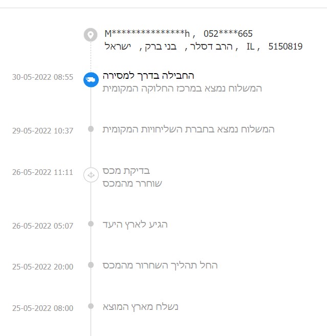 העיגול הכחול - הוא בדרך למסירה לכתובת ברח' הרב דסלר
