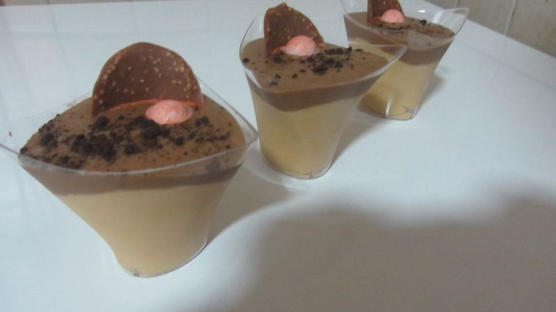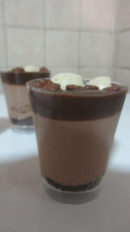 שמים לב לא למלא מעבר לגובה של כחצי מגובה הגביע כדי שיהיה מקום לחלק העליון עם העוגיה באופן שלא יגע במוס. אצלי המוס אמנם אל נגע בכוסית העליונה אבל הצטערתי שלא שמתי קצת פחות מוס בכל כוס.
