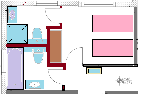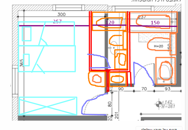 בשטח המצורף צריך להיכנס - שירותים אמבטיה כל המשפחה + חדר עם יחידה של שירותים כיור ומקלחת, וכן כיור חיצוני לאמבטיה כל המשפחה.
