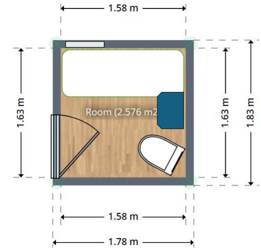 ליתר ביטחון מדדתי שוב, מצאתי טעות קלה באורך החדר 1.66 במקום 1.63
