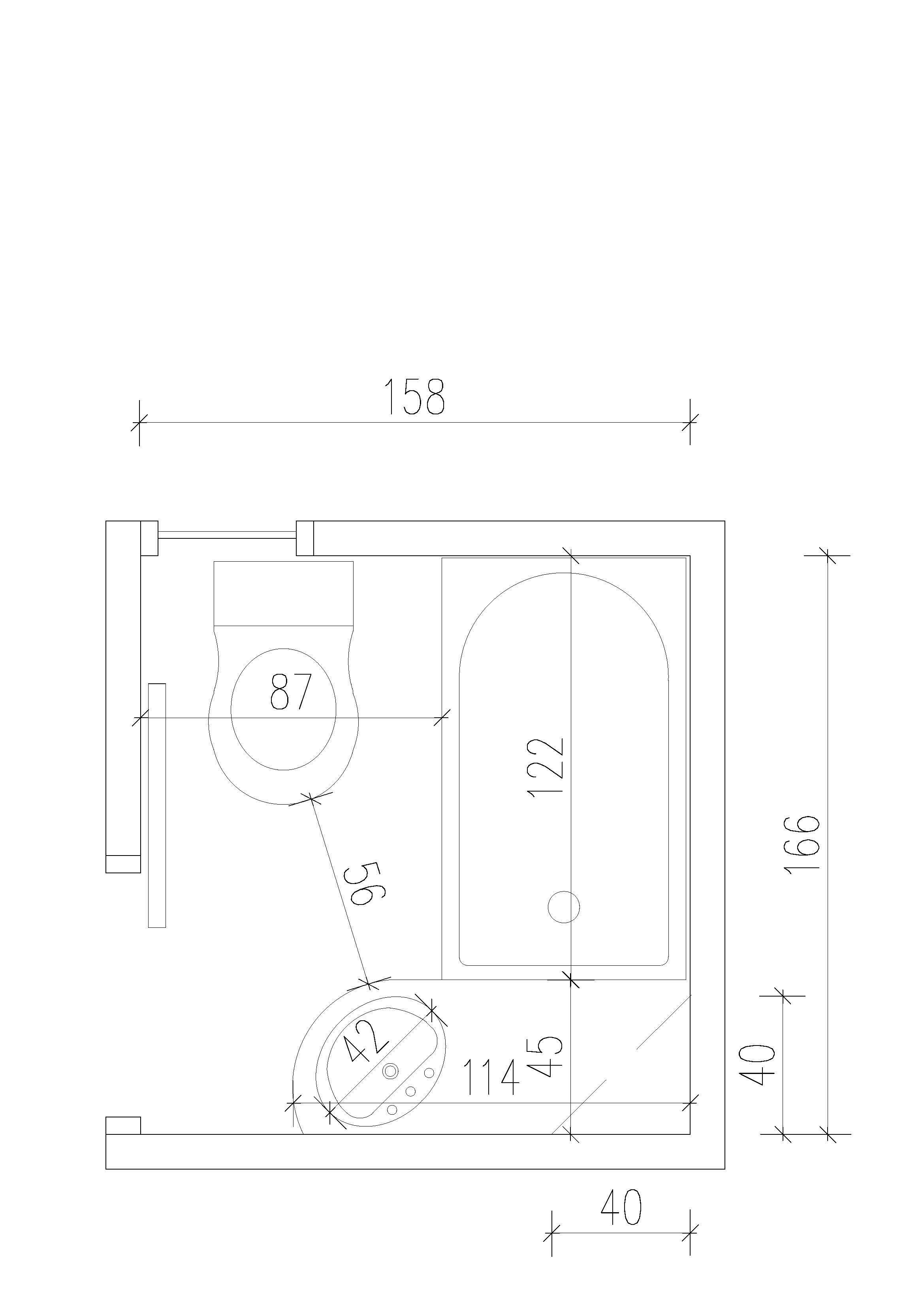 מצ"ב שרטוט של החדר אמבטיה הקיים הגודל שלו ממש מינימלי 158/166 ואין לאן להרחיב אותו.