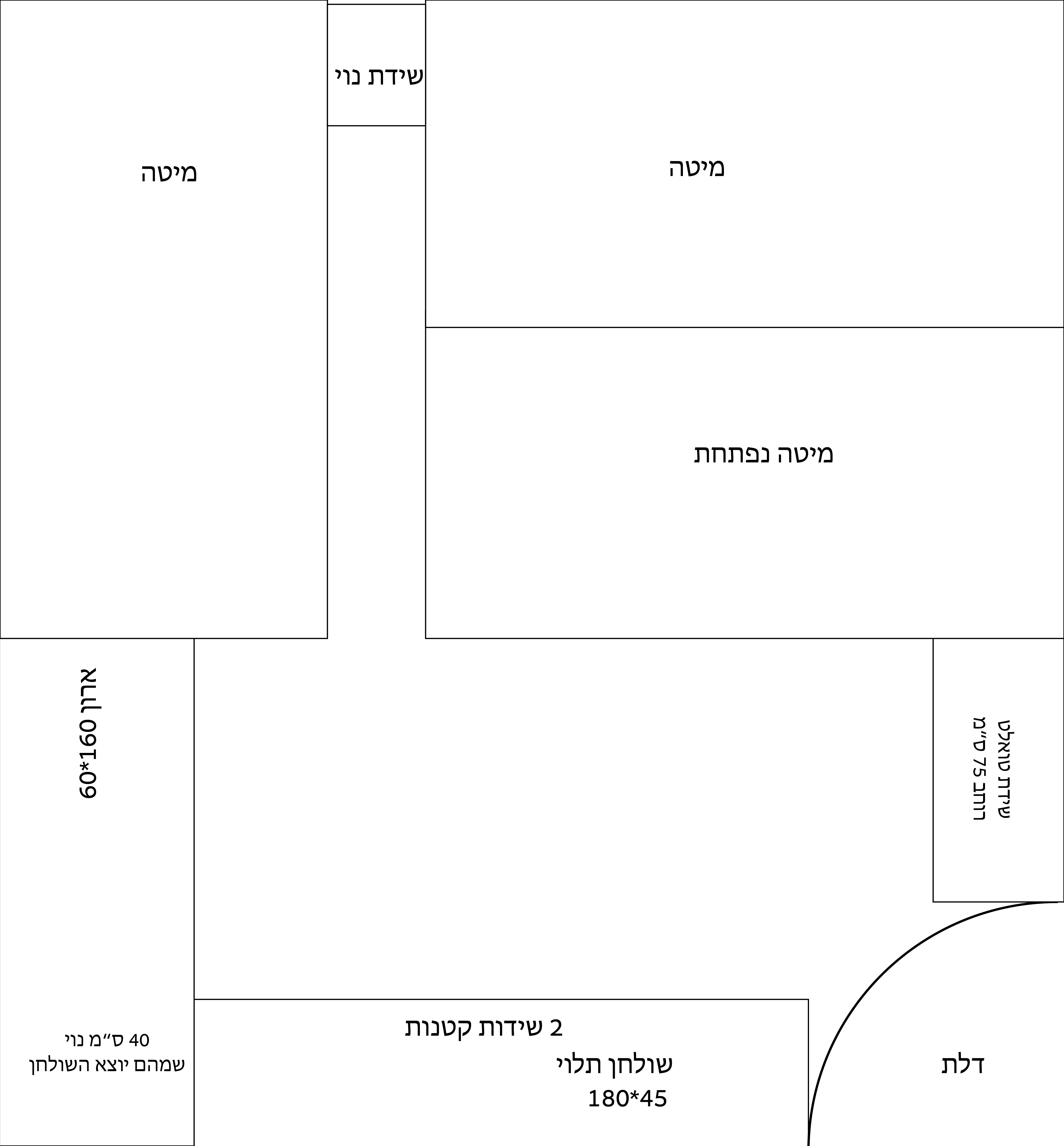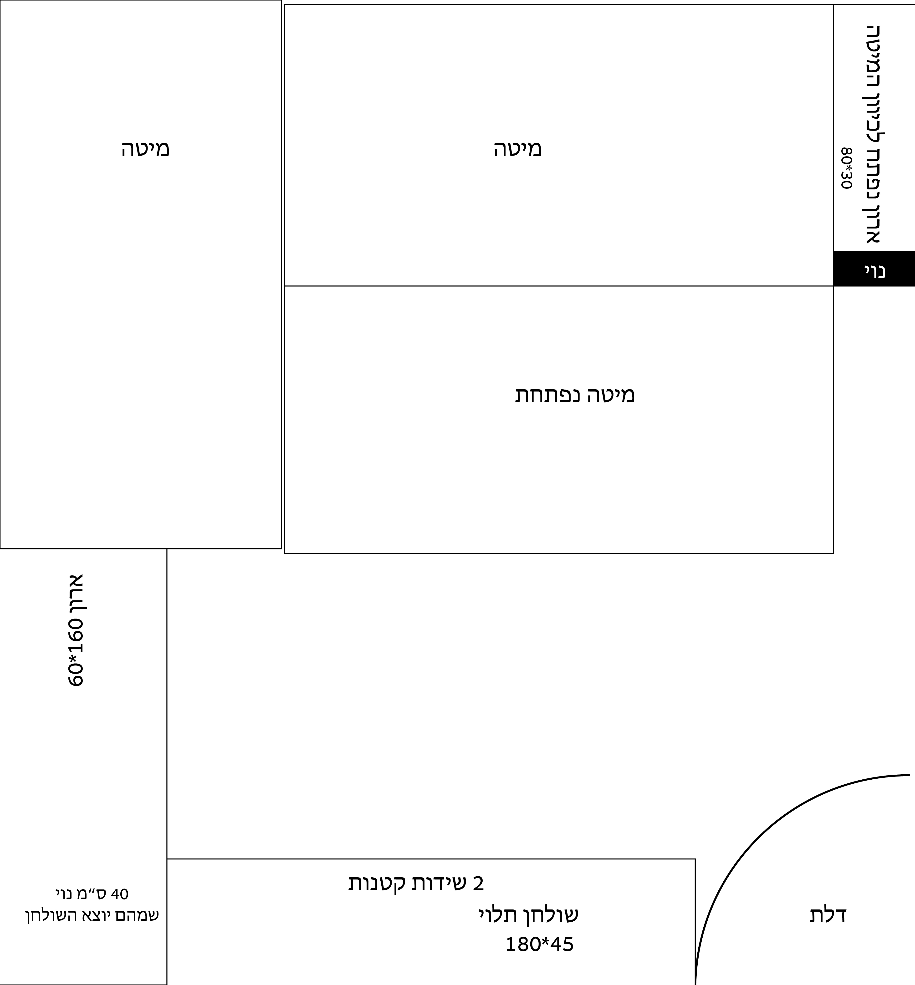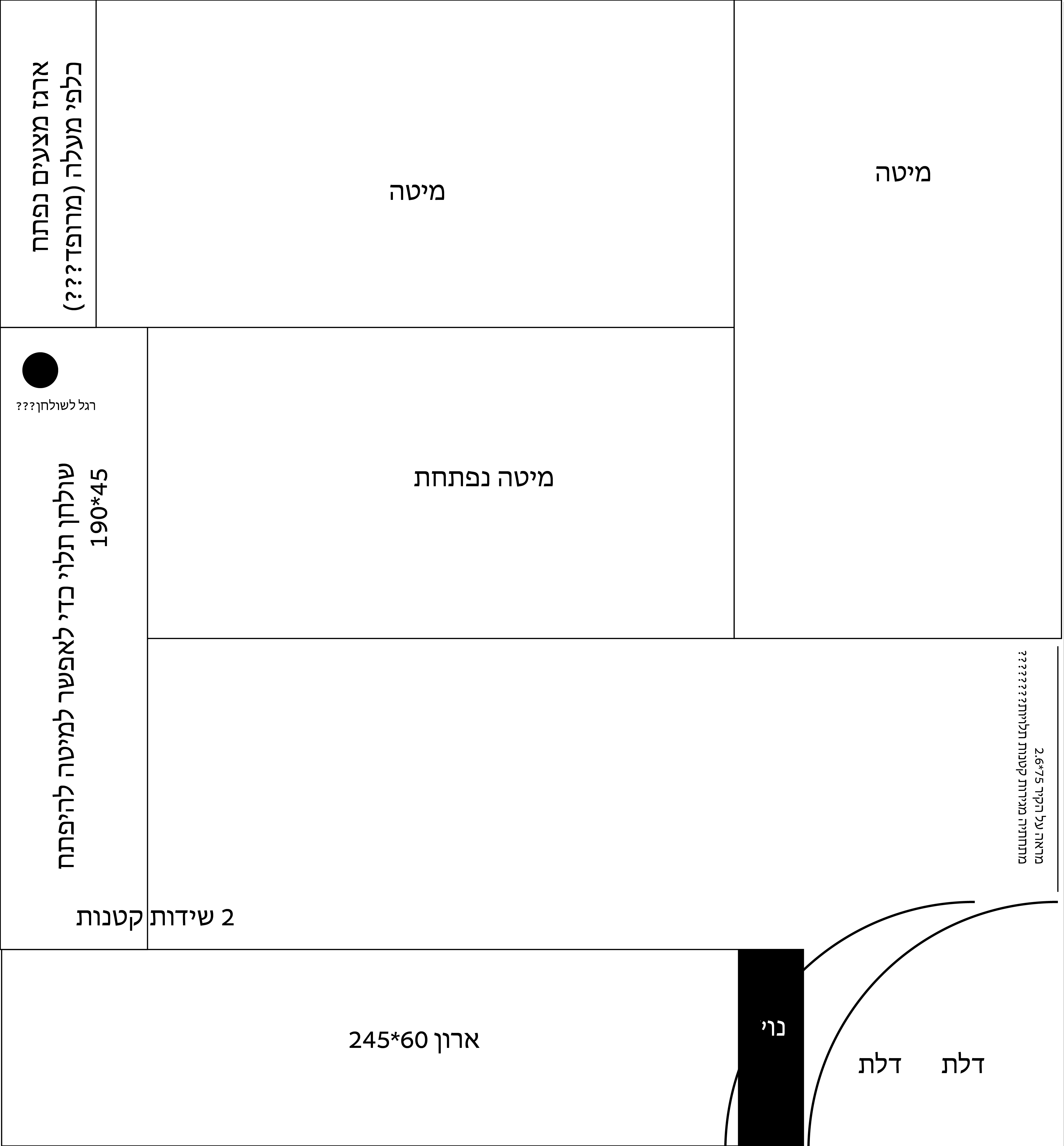 • חלוקה כמו בשרטוט עם מגירות, מיטה מובנית ויחידת מדפים פתוחים?