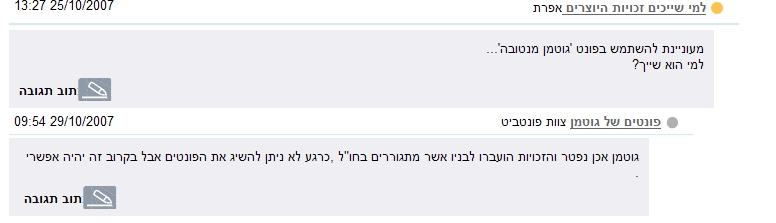</td></tr><tr><td colspan="2" style="padding-top: 10px;" id="naParagraph_722123" class="C_1 T_14" align="right" valign="top">כדי להכין גופן טוב צריך להשקיע עבודה רבה, אולם המהפכה הדיגיטלית הפכה את השימוש בגופנים לפשוט: כל שצריך זה להוריד קובץ, להריץ אותו ויש לכם גופן חדש על המחשב. האם מותר לכם להשתמש בו מבלי לתגמל את היוצר? עו"ד אביב אילון, שותף במשרד עורכי הדין אילון, אגרט ושות', מבהיר שלבעלי זכויות בגופנים יש אפשרות להגן על זכותם, ובמידת הצורך לדרוש מהמפר להפסיק להשתמש בגופן ואף לדרוש סעד בגין הפרת זכויות היוצרים.