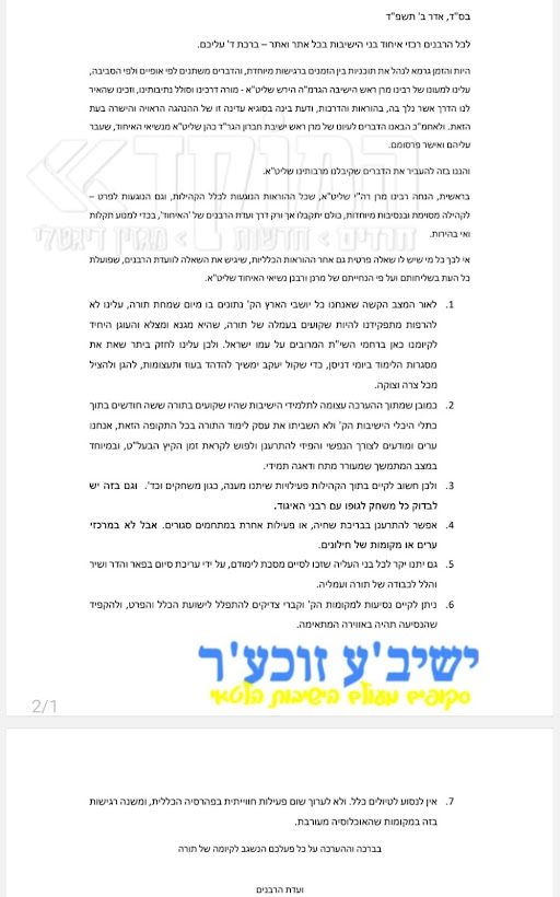עדת הרבנים של איחוד בני הישיבות בהנחיות מיוחדות לבני ישיבות לבין הזמנים כפי שהורה להם רשכבה"ג מרן ראש הישיבה הגרמ"ה הירש.
