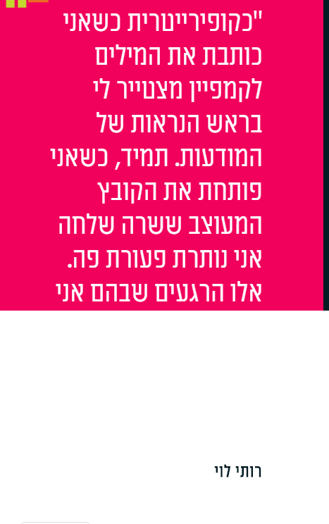ואחרי שאני גומרת לדפדף, אני שמה לב שהיא באמת אומרת משהו.