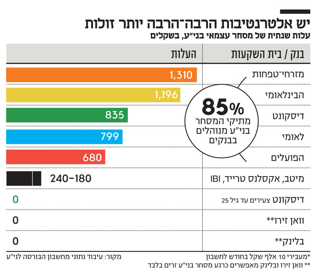 אין הרבה מוצרים פיננסיים שפערי המחירים בהם כל כך משמעותיים כמו במסחר בניירות ערך. הבנקים המסורתיים גובים דמי ניהול, וכן עמלות מכירה וקנייה, שמגיעים למאות אחוזים יותר מהעמלות שגובים בתי ההשקעות. כך לדוגמה, מבדיקת כלכליסט עולה כי במקרה של מסחר בניירות ערך ישראלים, בתיק שהיקפו 50 אלף שקל ומבוצעות בו שתי פעולות בחודש, סך העמלות הממוצעות שישלמו לבנקים נע בין 680 שקל בבנק הפועלים ל־1,310 שקל בבנק מזרחי טפחות. בבתי ההשקעות, לעומת זאת, ישולמו בסך הכל 180-240 שקל. על אף פערי המחירים בין הבנקים הגדולים לבתי ההשקעות, 85%–90% מתיקי המסחר העצמאי בניירות ערך נמצאים בבנקים, והתוצאה - עמלות ניירות ערך הן מרכיב משמעותי ברווחי הבנקים. במחצית הראשונה של 2024 ההכנסות מהעמלות האלו הסתכמו ב־1.4 מיליארד שקל - כחמישית מהכנסותיהם מעמלות.
