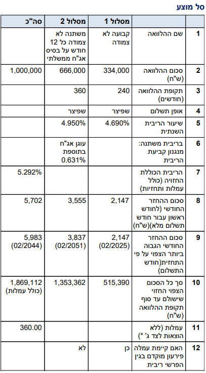 משכנתא של מליון ש''ח