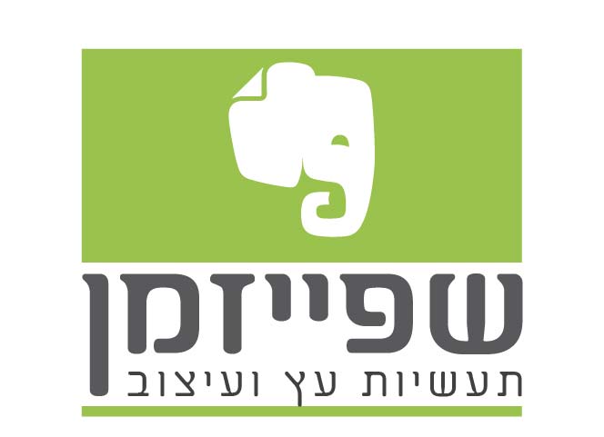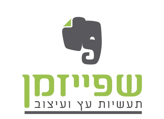 ממליץ לא לנסות לחבר את הפיל איכשהו לאחת האותיות. תשאירי את זה מקצועי, כראוי לתעשיות עץ ועיצוב, ותפרידי את הסמל מהטקסט.