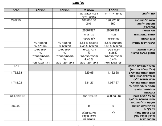 זו ההצעה שקיבלנו מבנק דיסקונט (ע"י יועץ משכנתאות).