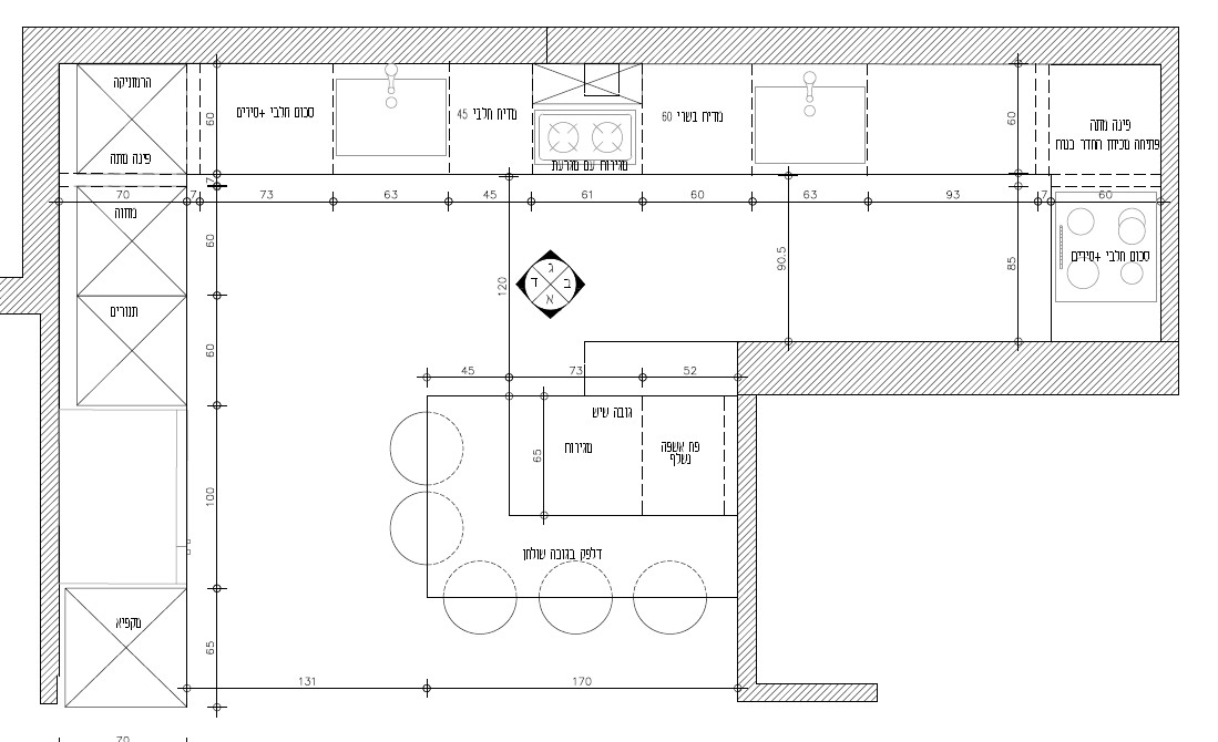 לדעתי כדאי לחשוב אם הכיריים בשרי נמצאות במקום נכון --כי שם רב הפעילות ונראה צפוף ותקוע