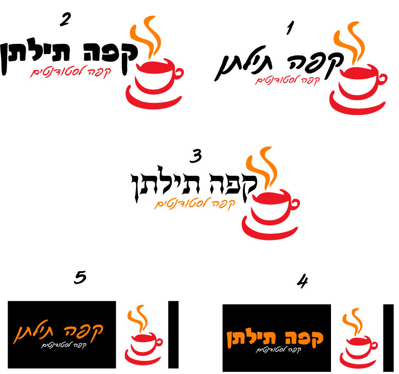 למה שלא תשלבי בלוגו איכשהו צורת תילתן? אני לא טובה בזה אבל 'קפה לסטודנטים' לא בא לי טוב. צריך משהו שיותר מצטלצל באוזן, איזה סלוגן חמוד.