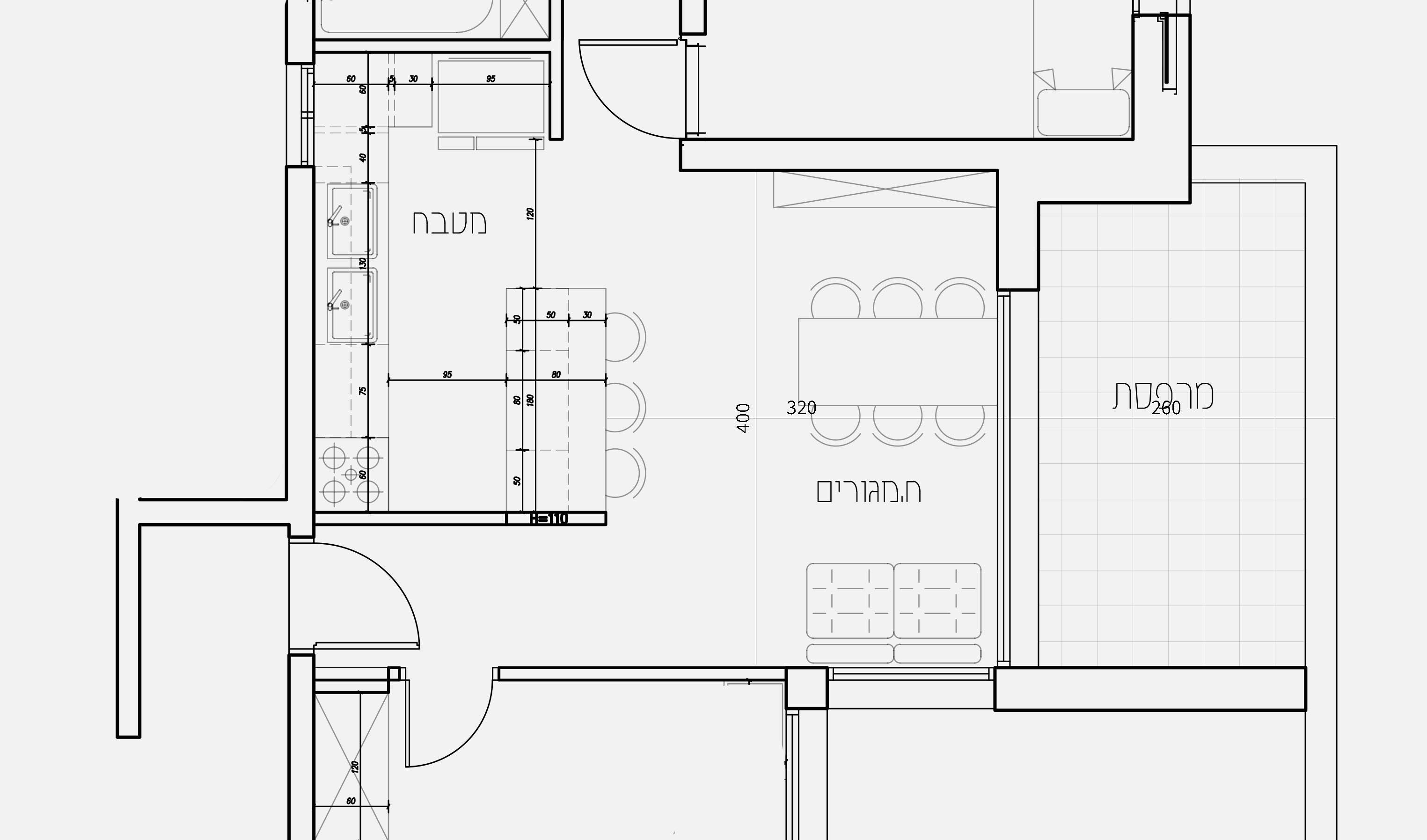 יש לי מטבח בסוף הסלון ואנחנו רוצים לעשות דלפק כדי שיהיה לנו יותר ארונות ושיש וכן יהיה מקום ישיבה במטבח.