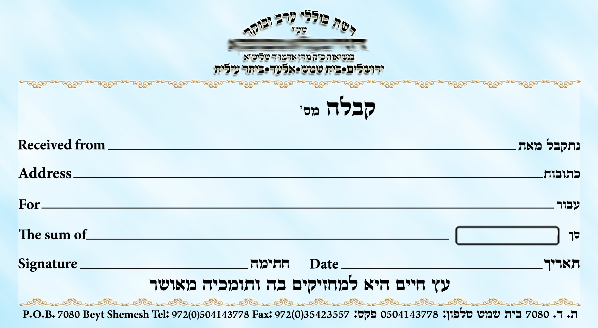 4. גודל המלבן לסכום הקבלה כדאי להגביה.
