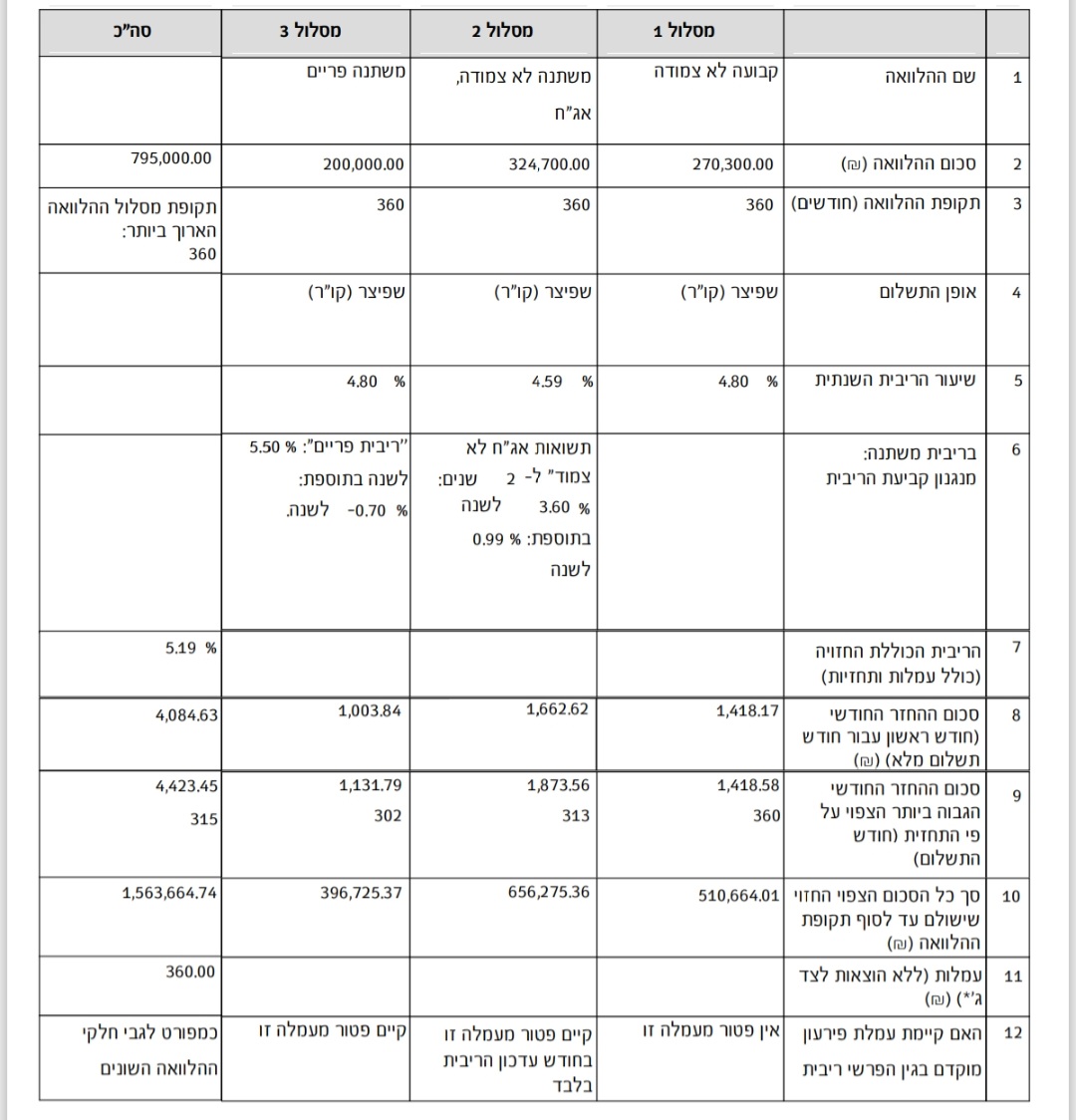 אשמח לקבל חוות דעת מקצועית לגבי התמהיל משכנתא המצורף,