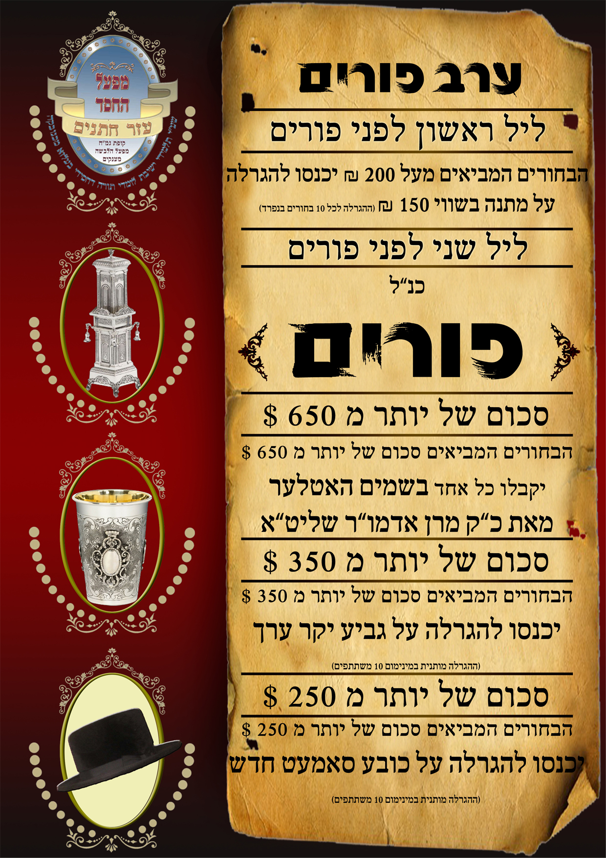 כמה כסף צריך הבחור להביא, על מנת לזכות בהגרלה ראשונה "מפעל חסד", זה נראה שיש 4 אופציות..