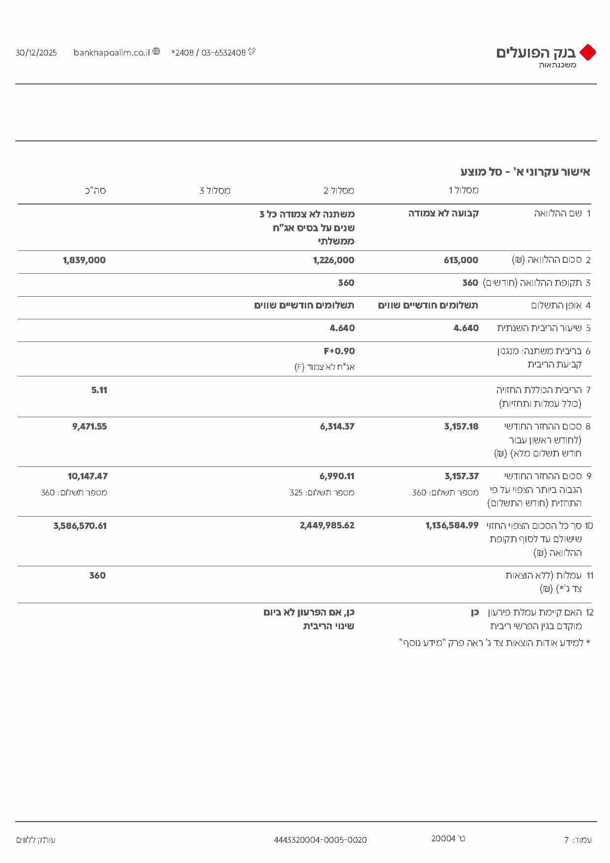 קיבלתי אישור עקרוני לאחר מו"מ בין לאומי ופועלים. 75 אחוז מימון 30 שנה קלצ 4.64 ומלצ כל 3 4.64 מצורף