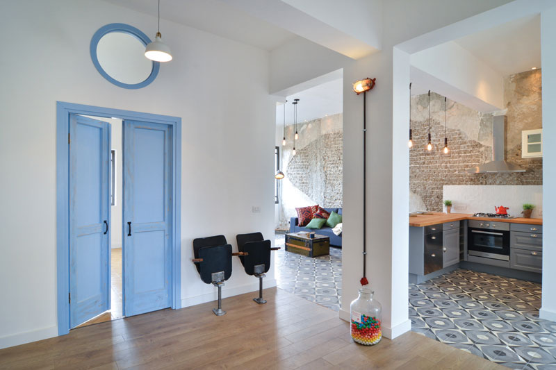 בדרום יש אנשים צעירים ומצליחים שאוהבים לשמור בחלק מהבית על אותנטיות לחשוף את הבלוק הישן לעביר את החשמל בצנרת תעשייתית ולשחזר את הדלתות כמו שהיו פעם.