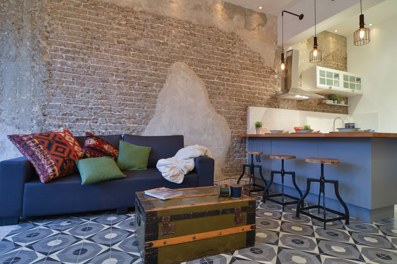 בנוסף, לא סובלת את הטרנד של הקיר המקולף. עוד משהו: הריצוף לא מדבר באותה שפה של כל הבית.