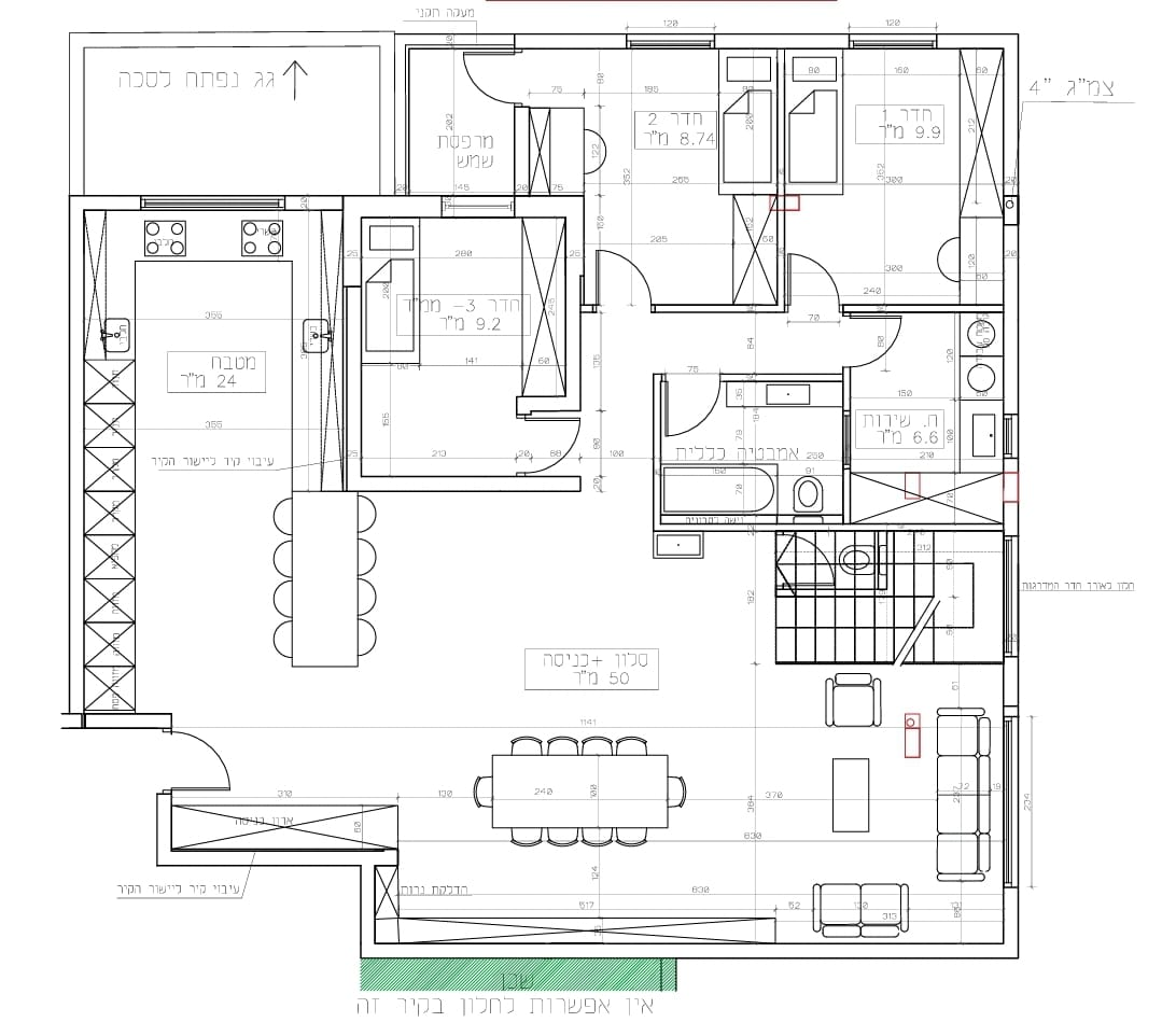 3- אין מסדרון מפותל אלא רחבה שימושית