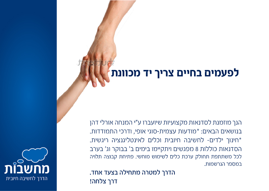 אני מעלה מודעה שעשיתי, על הלוגו עוד נעבוד.... אבל בנתיים, מה אתם אומרים על הרעיון? טוב/בינוני/גרוע? כל מה שבא לכם תגידו, תעירו, תאירו ותקטלו זה עוזר לנו.