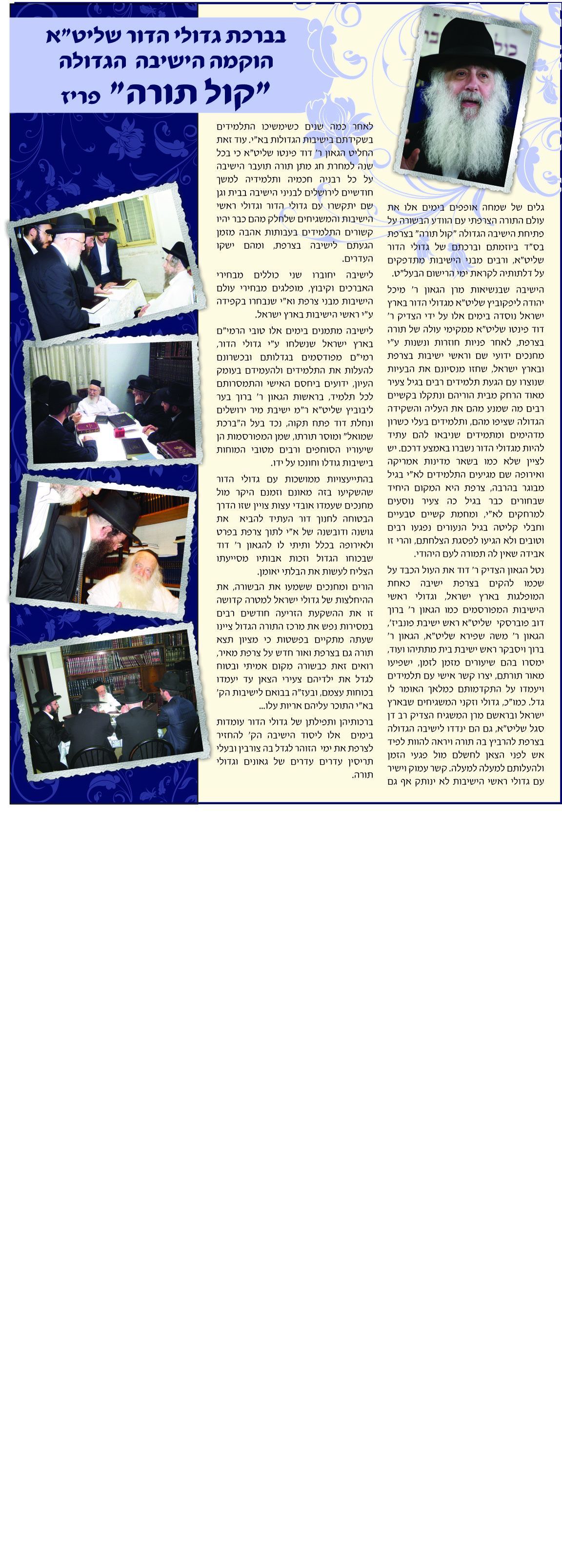 אני אישית הייתי מיישרת את התמונה של הרב למעלה. נראה לי יותר מכובד.