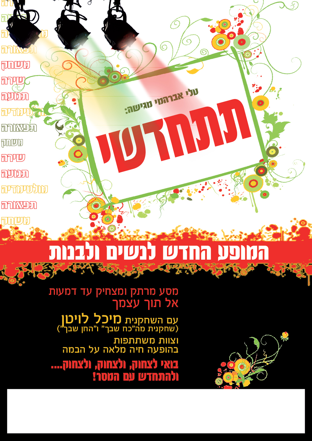 פרסומת למופע חדש (מבית היוצר של 'קולות'), בעיצוב ובסגנון שונים לגמרי לפי בקשת הלקוחה.