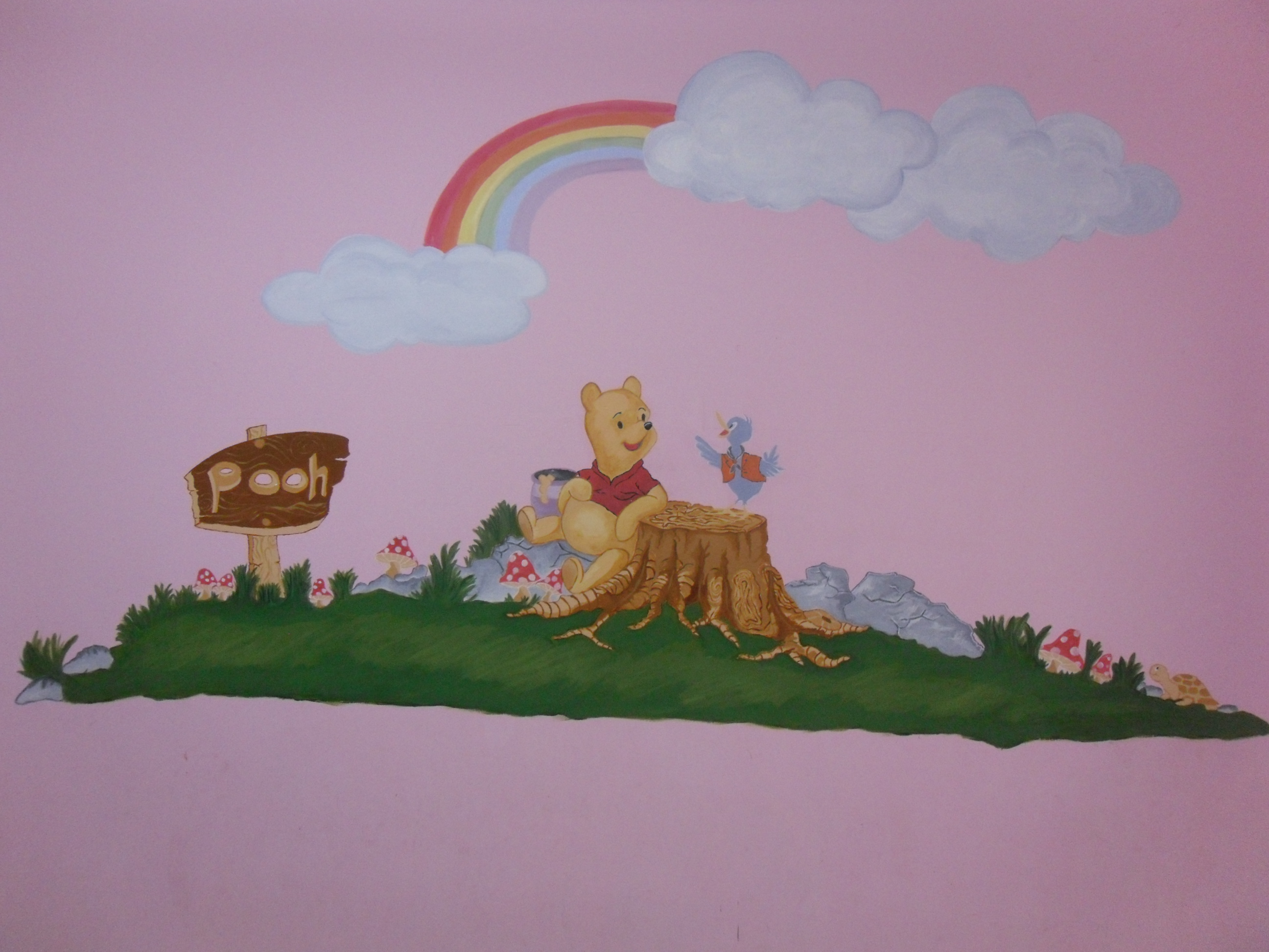 צויר במכחול (עם צבעי מים-כמובן) על קיר בגן ילדים,