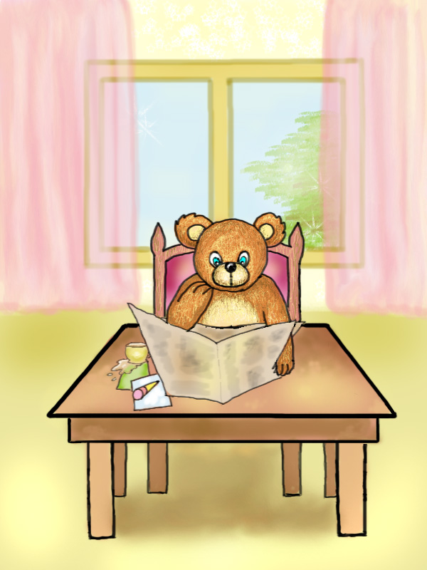 ציורים יפים! קצת זועק מידי שהם ממוחשבים. סגנון הצביעה הכללי מזכיר צביעה ידנית אולי בצבעי מים אבל פתאום יש פריטים שמראים התערבות גסה של מחשב, כמו למשל הפרווה של דובי. הצלחות בהמשך! יש לך את זה.
