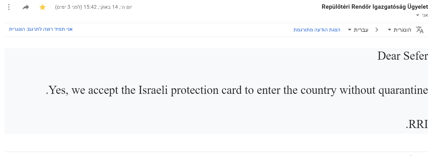 כולם צריכים בדיקת קורונה להכנס להונגריהמה לא נכון?