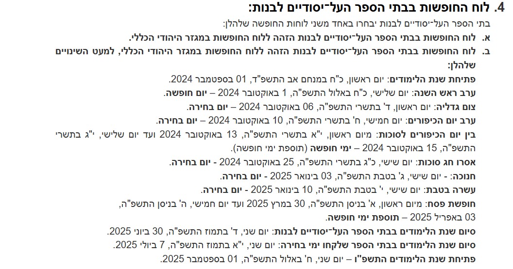 יש לוח חופשות מסודר ל2025 לתיכוני ב"י?