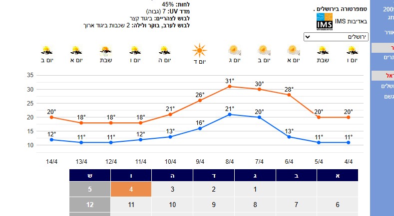 לבנתיים היום יהיה שרבי בכל הארץ עם טמפרטורות גבוהות, אך ללא שמש וצפוי אביך. ולקראת אחה"צ יתכנו טיפטופי (שרב/בוץ).