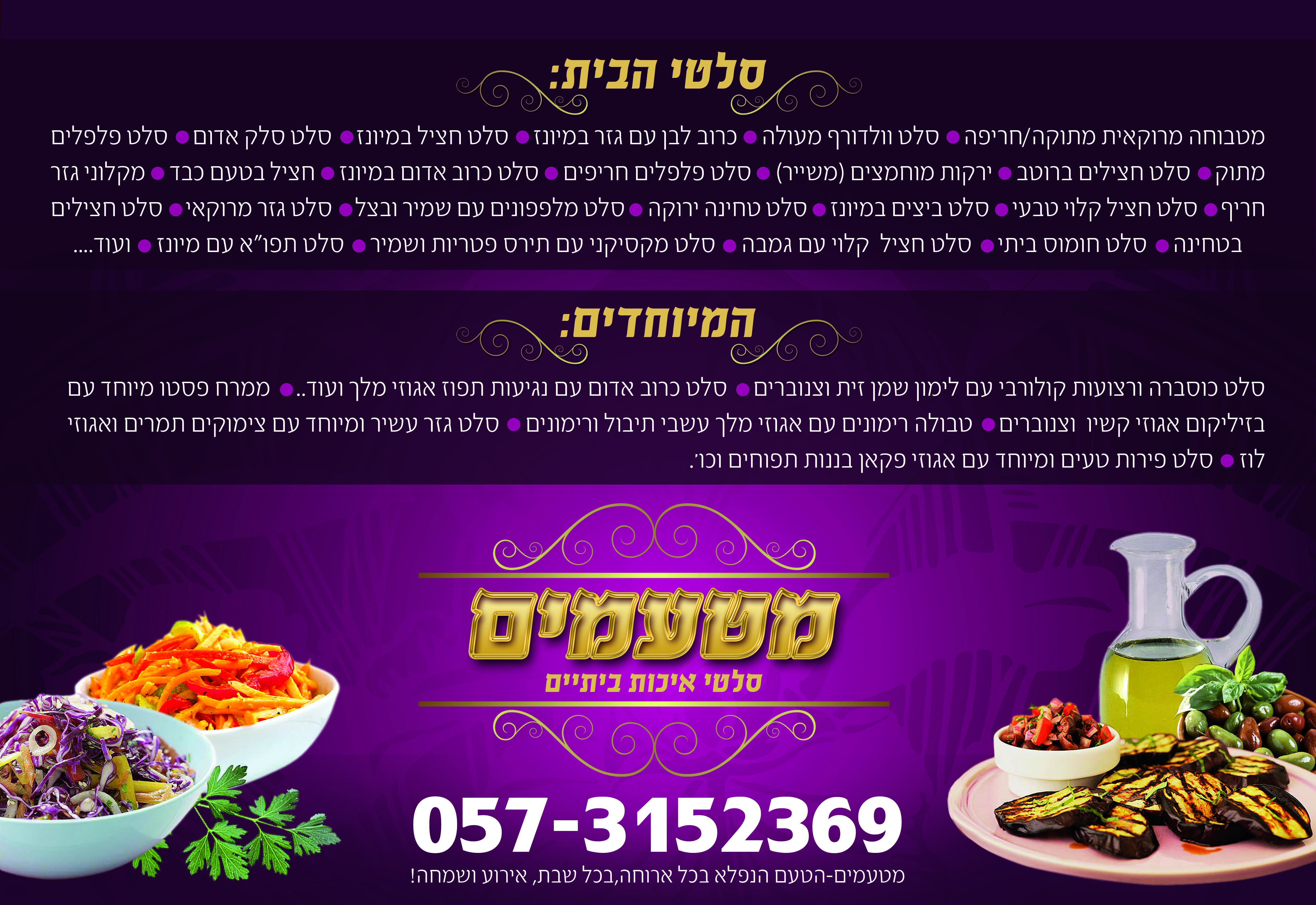 הפלייר הוא דו צדדי: הירקות עם הלוגו זה צד א' והצד השני הוא עם רשימת הסלטים