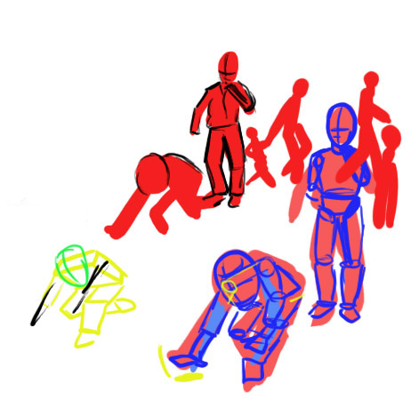 2.הנמכתי את אטימות השכבה והתחלתי לסמן יותר מדויק את מקומות ותנוחות האנשים בקוטר עט רחב כך אני יכולה 'להשתולל' עם זויות מענינות.