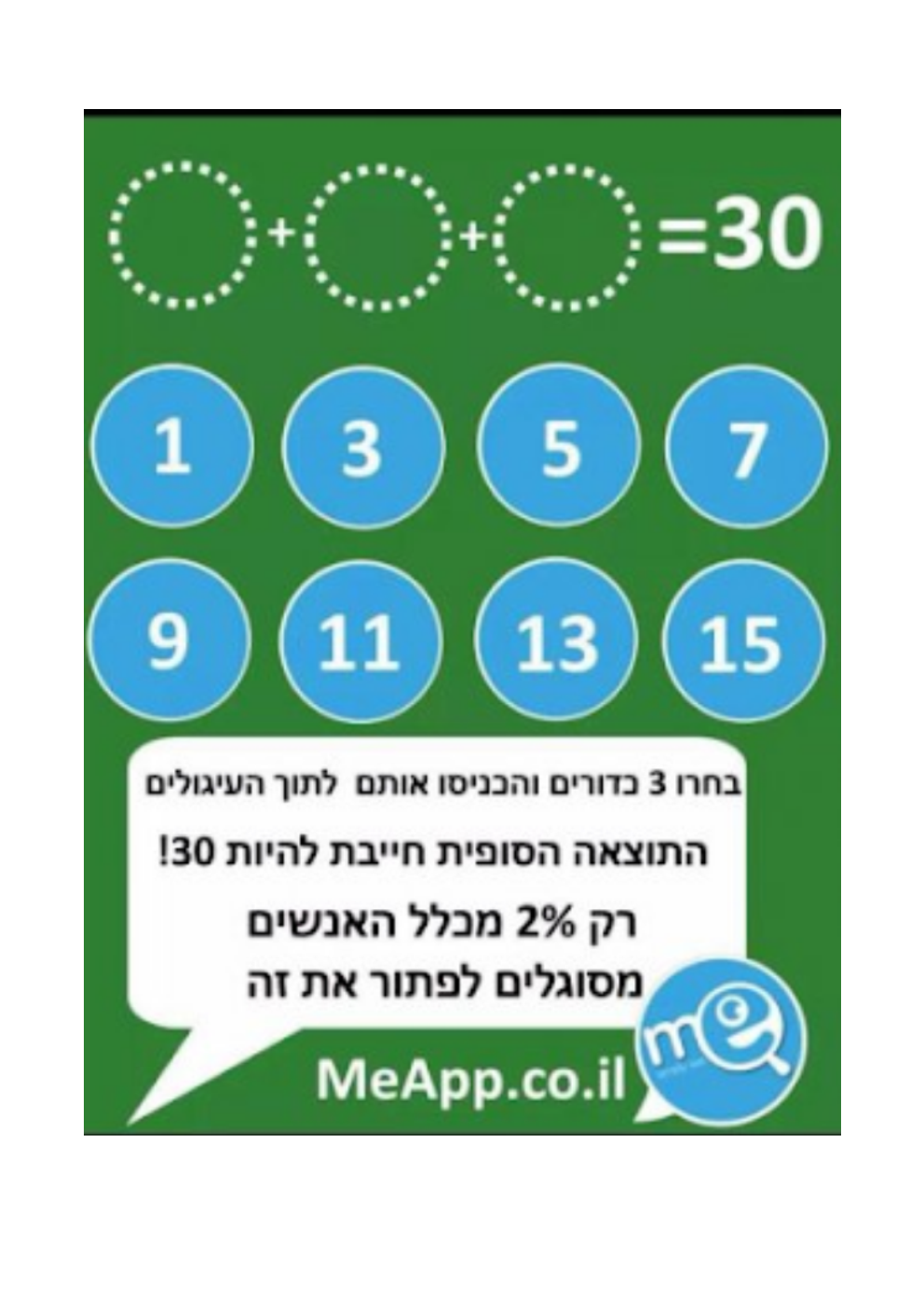 הביאו את הצירוף הזה לילדים בגן (שלא יודעים צורת מספר), והם הצליחו.