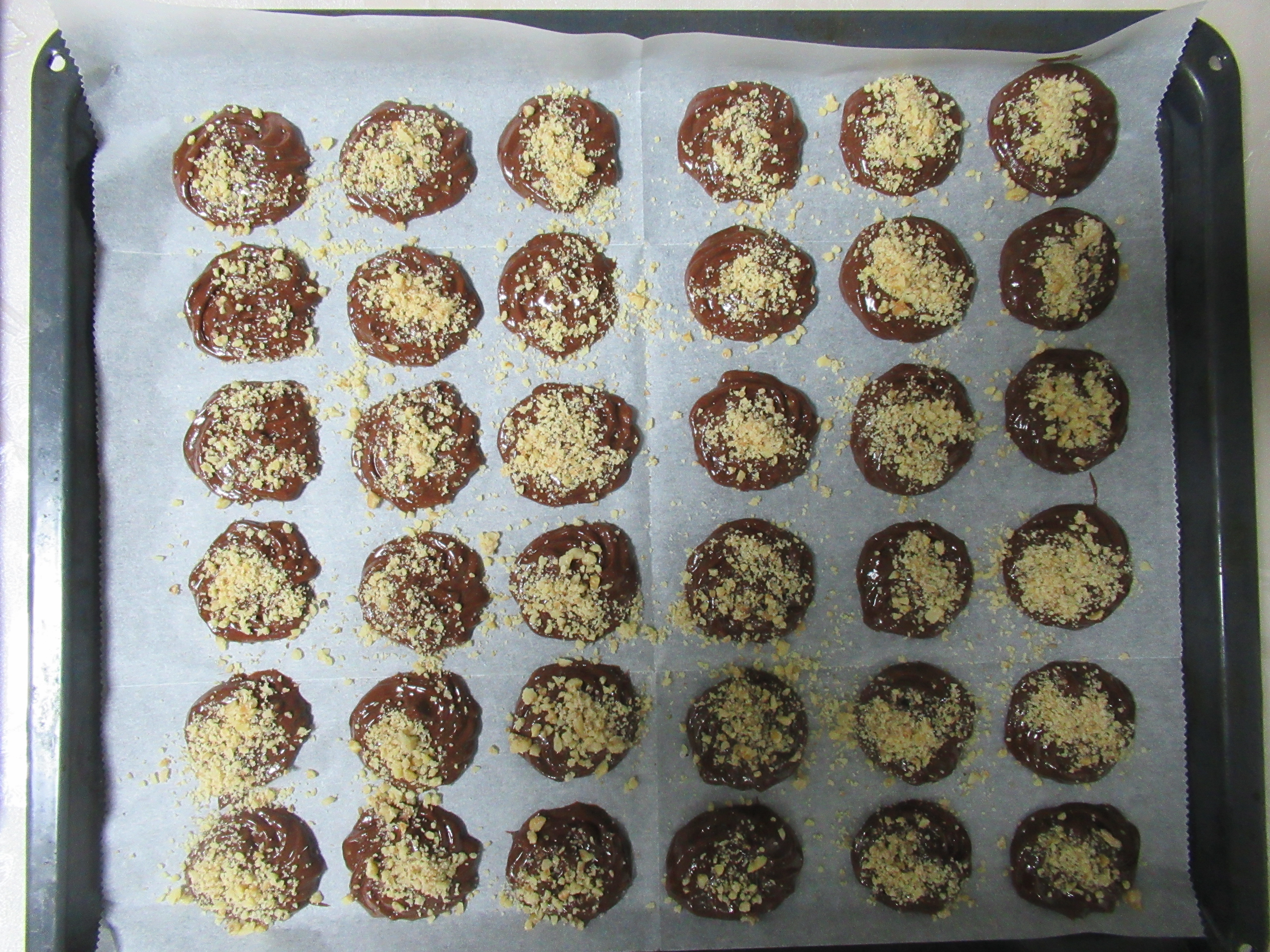 הוספתי אגוזים טחונים גם בבלילה של העוגיות וגם פיזור מלמעלה לפני האפייה.