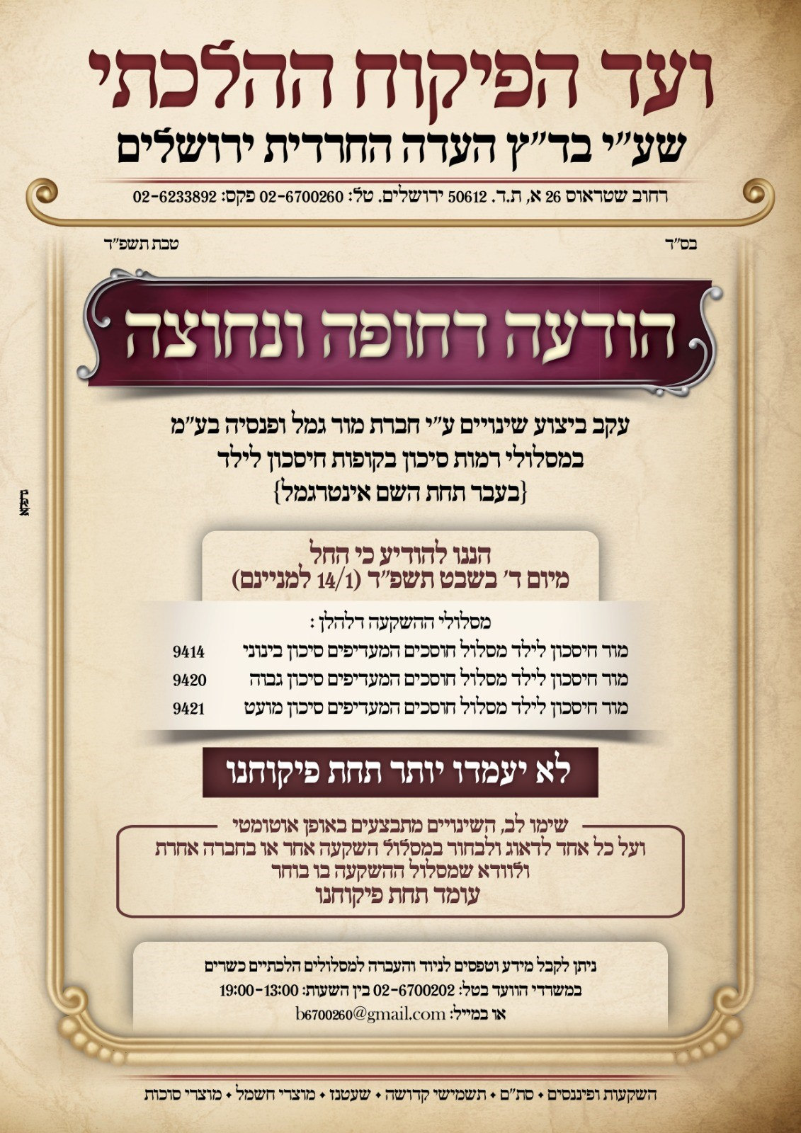 קיבלתי הודעה מועד הכשרות של העדה החרדית שההשגחה הוסרה ממסלול בסיכון מוגבר של אינטרגמל מור בחיסכון לכל ילד.