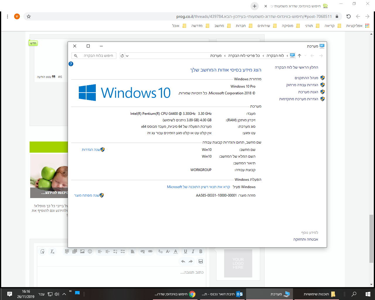 כתוב לי windows 10 pro