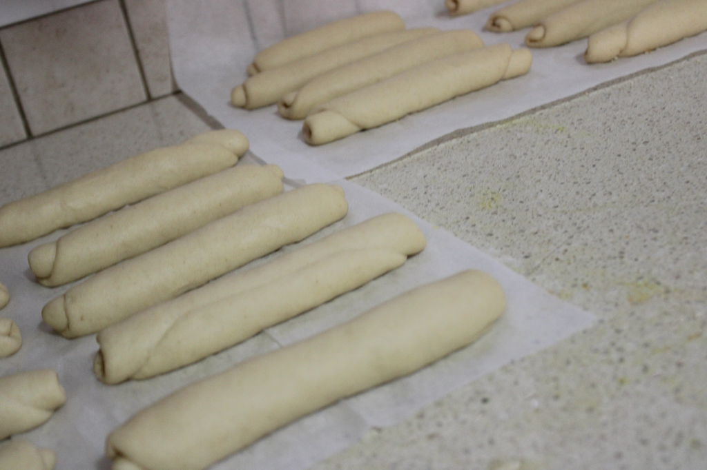 כדורי בצק לאחר שיצרתי גלילים מכדורי הבצק, והתפתחי עוד: