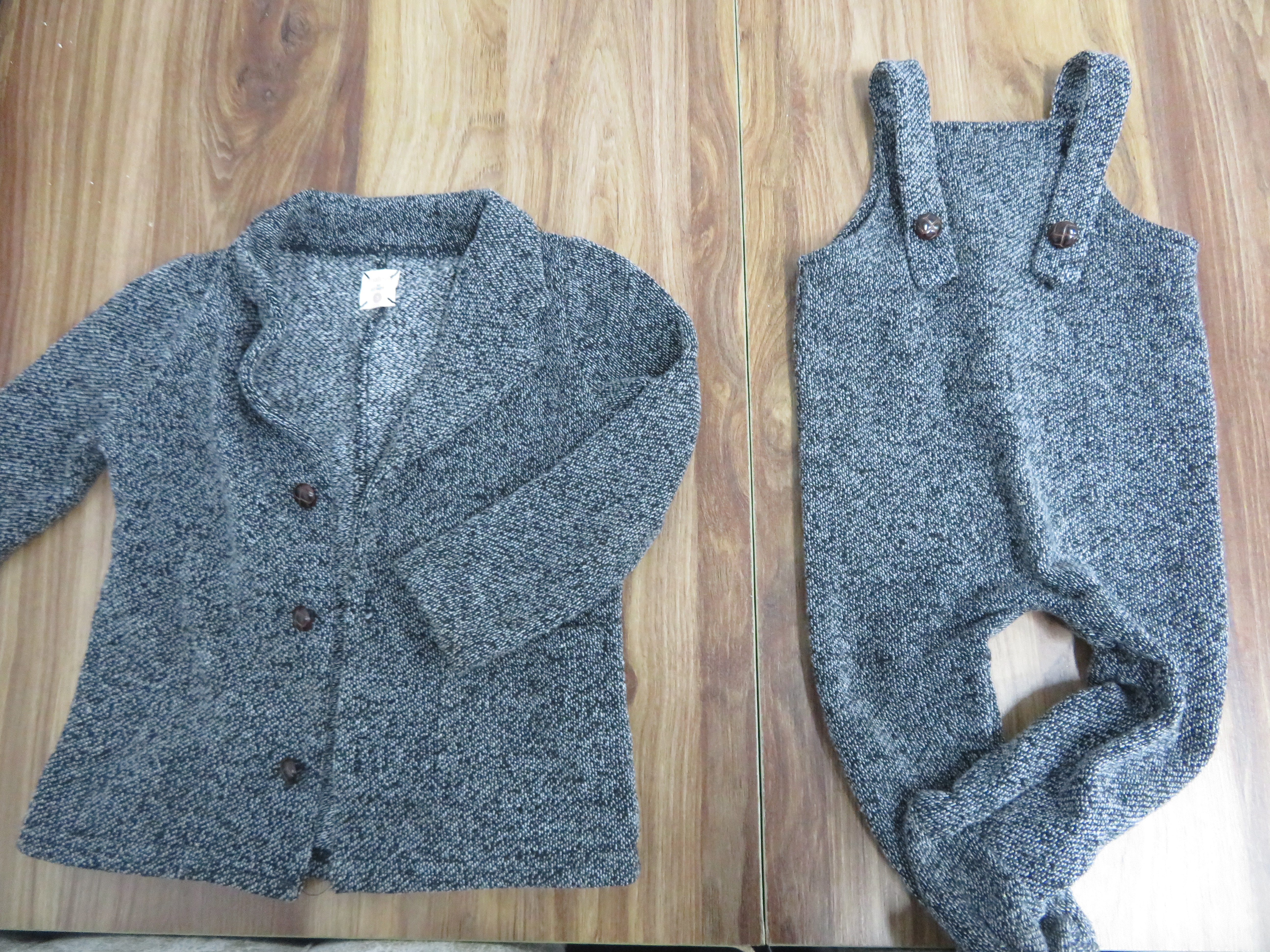 חליפה אפורה עם כפתורים חומים נקנתה בנינוס ונמכרה גם בחנויות נוספות.