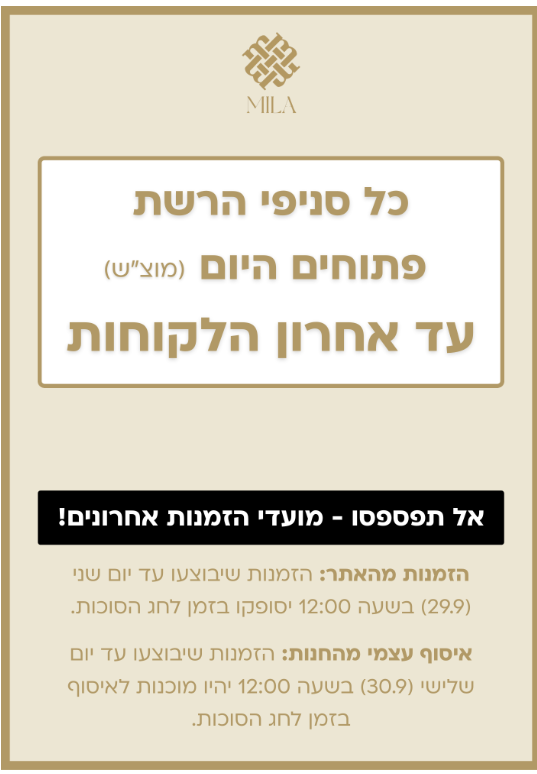 מילה פתוחים עד אחרון הלקוחות
