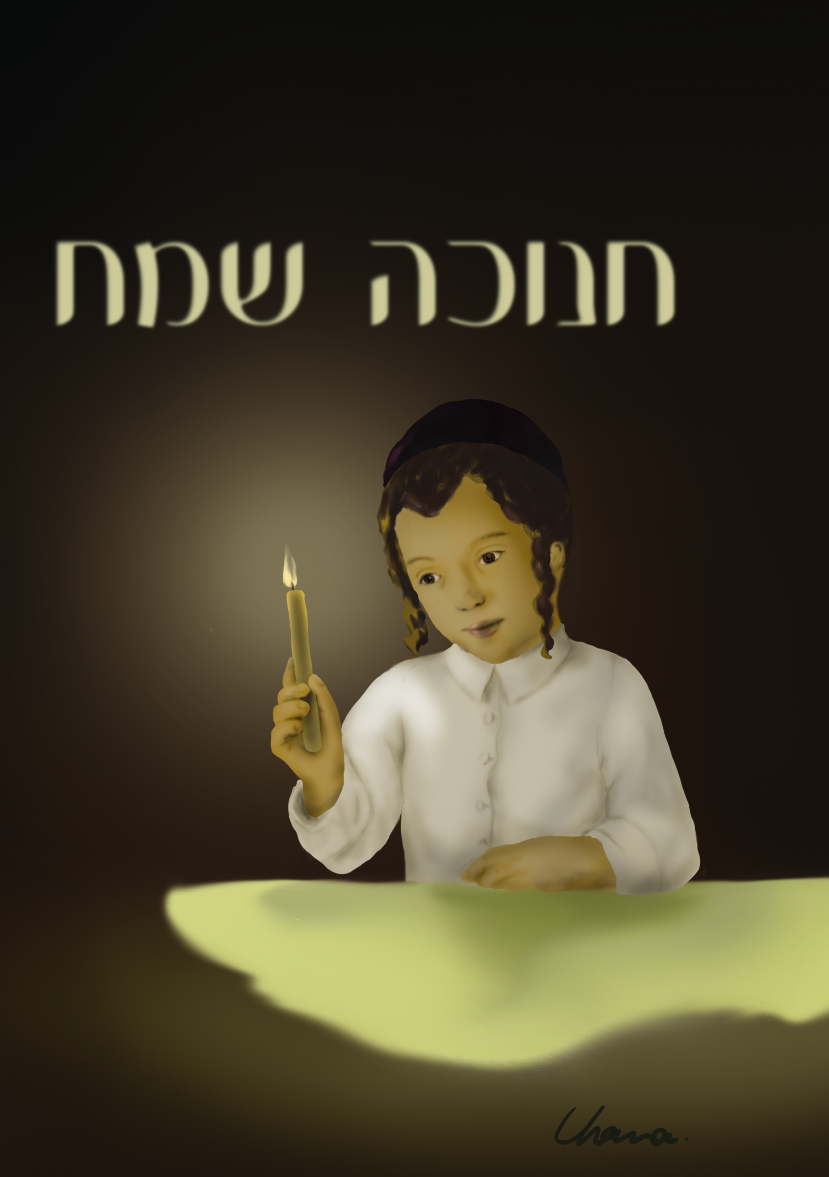 יפה! אבל צדק אדון בר לב, אם היית עושה את הגוון הכללי יותר צהבהב, ואת הילד יותר מחייך זה היה נראה יותר "חנוכאי"הביצוע יפייפה האווירה מדכא ....