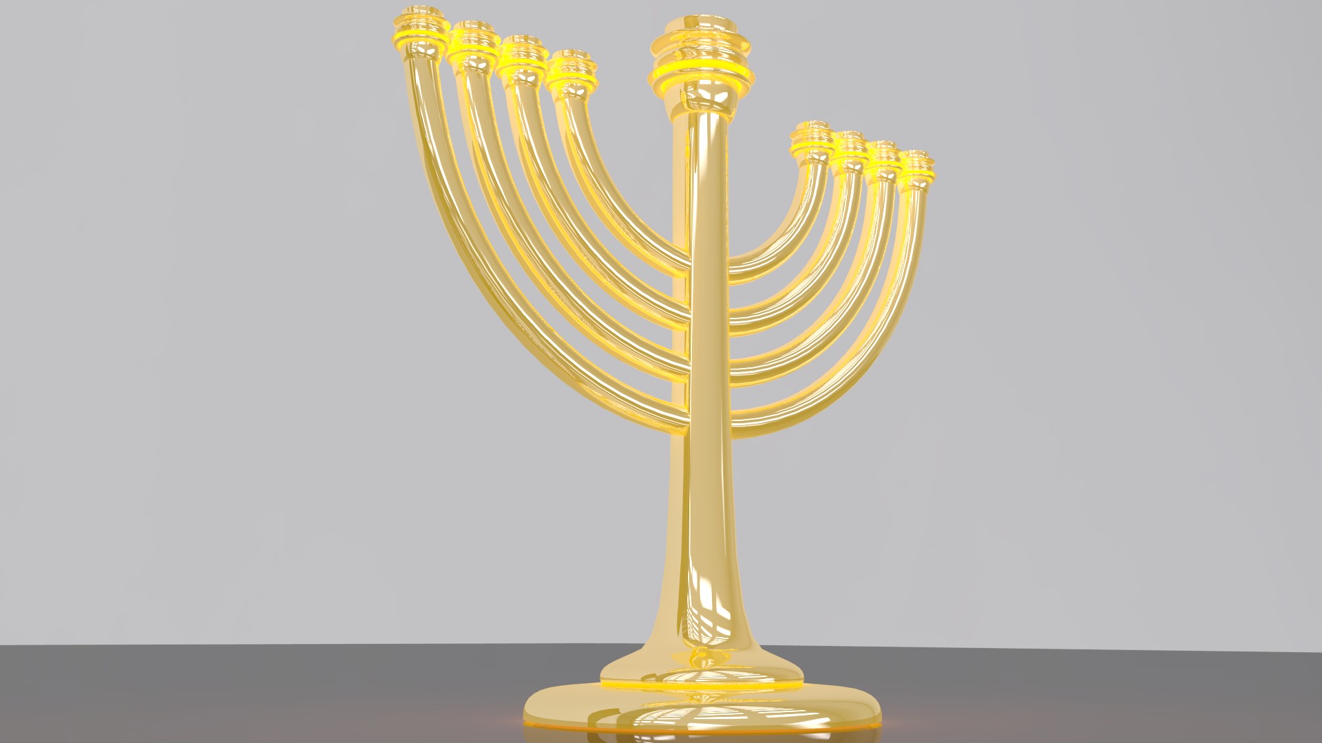 החומר של החנוכיה הוא צהוב זהב