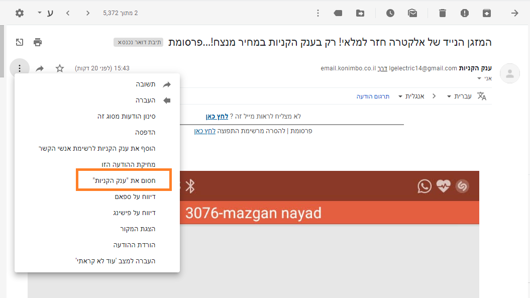הודעות שיתקבלו בעתיד מהכתובת ... יסומנו כספאם.
