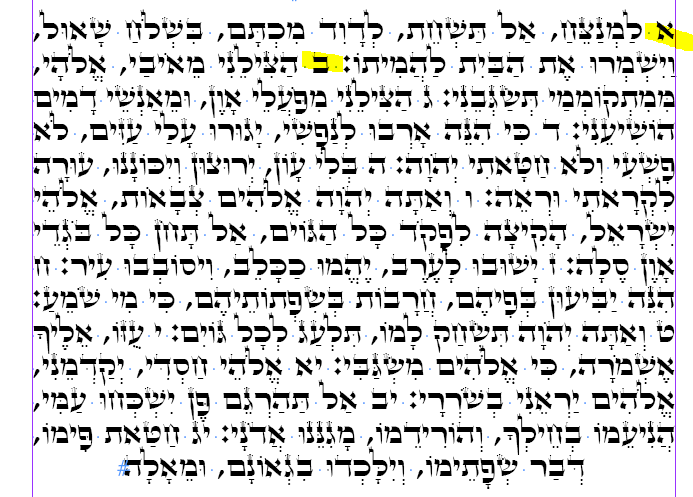 יש לי טקסט של פרקי תהילים עם אות לכל פסוק בלי סוגרים אלא פשוט רווח-אות-רווח.
