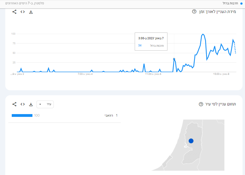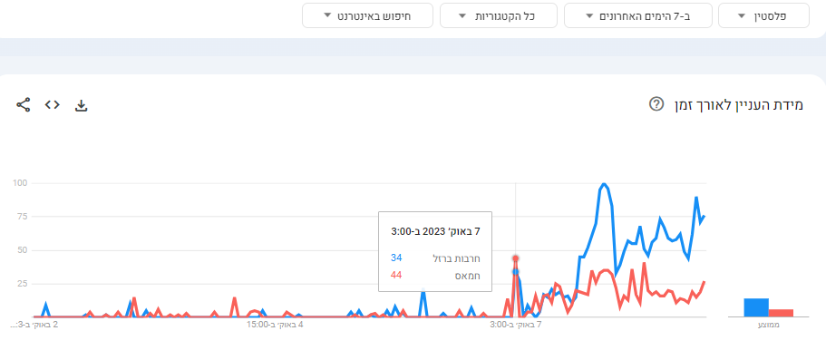 באותה שעה הייתה גם עלייה משמעותית לחיפוש "חמאס" ביו"ש
