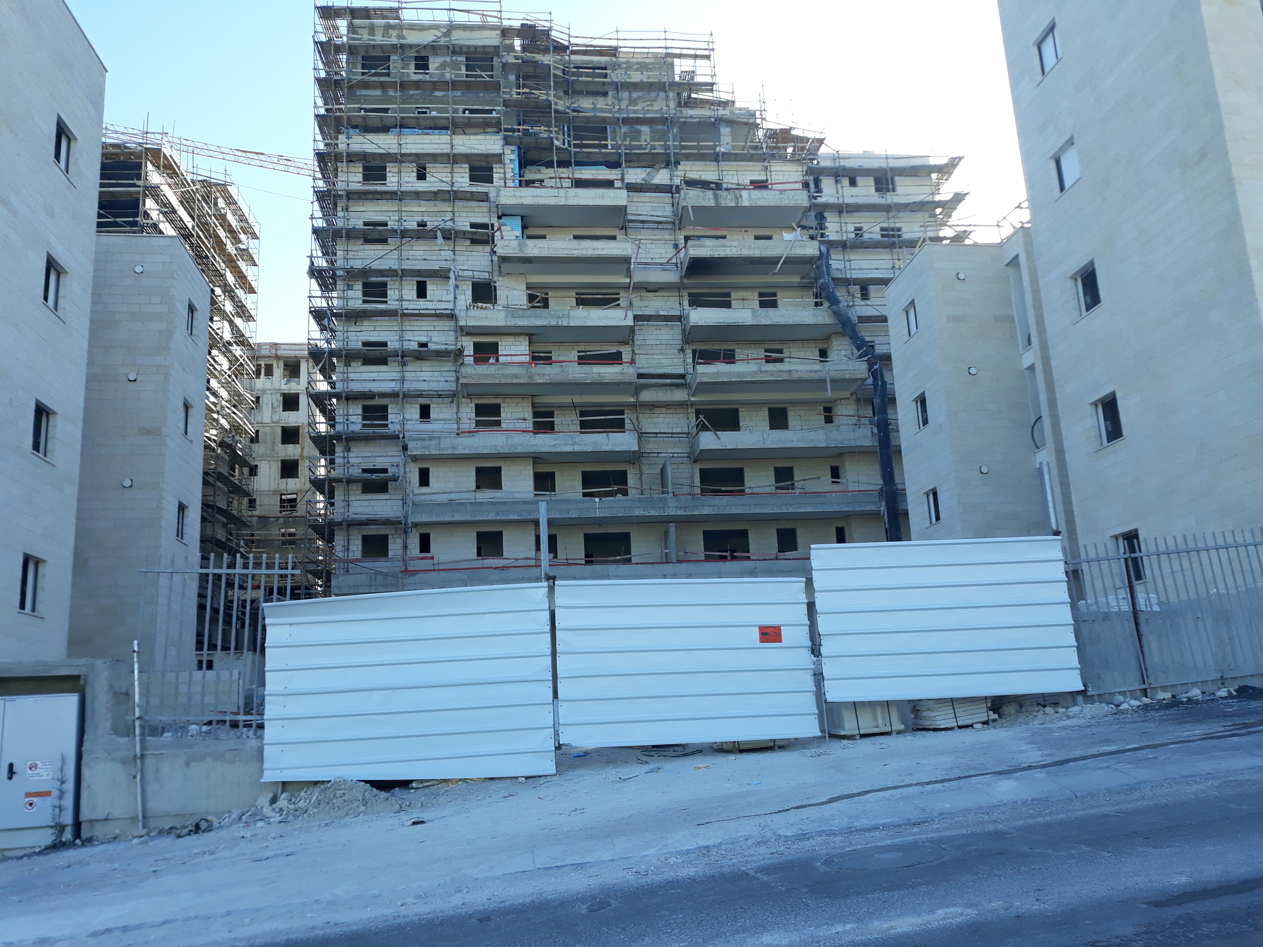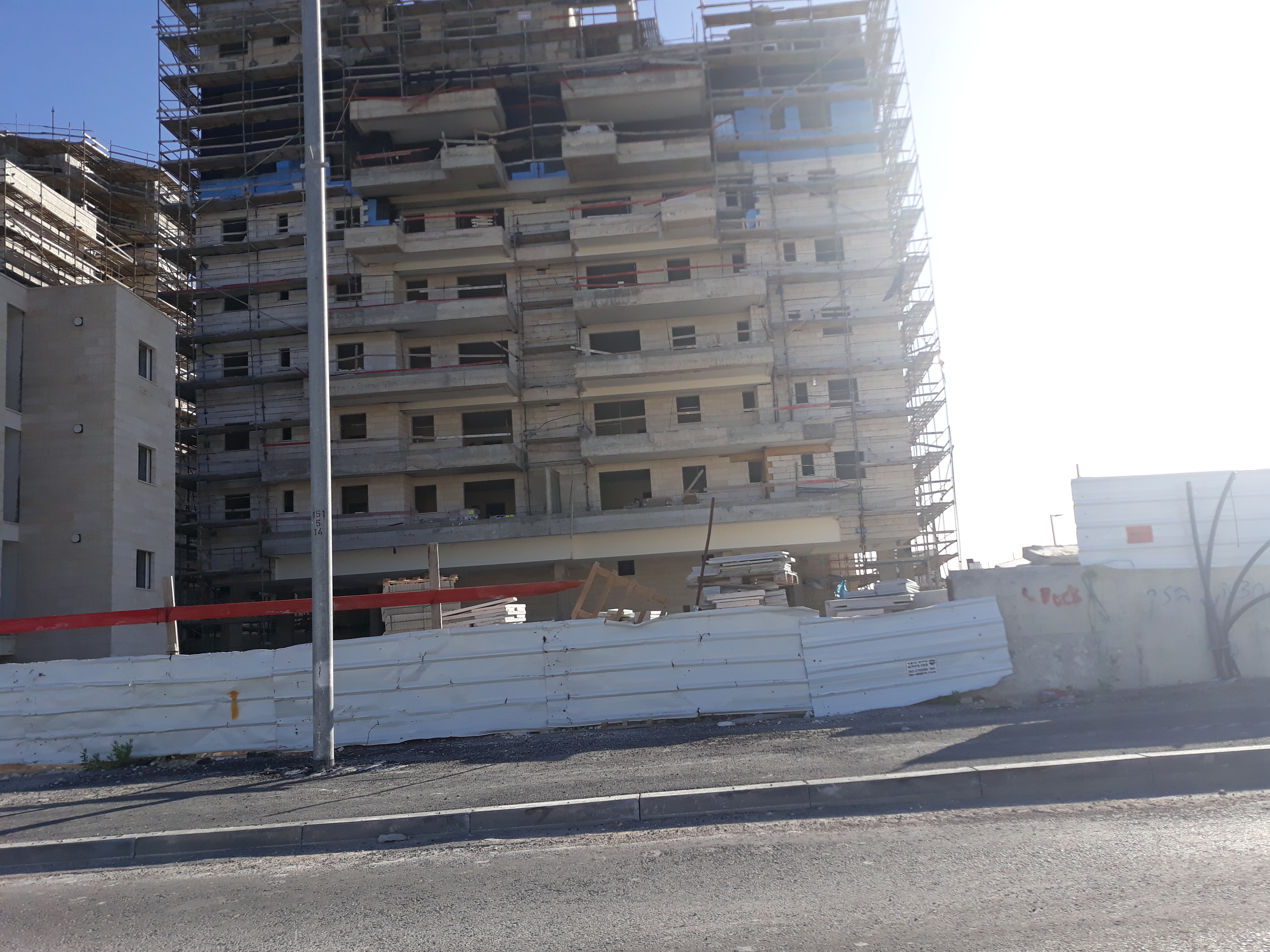 איזו צפיפות מטורפת בין הבנינים!!כל בניין ודירה עם הקצב שלה, יש דירות שכבר אוחזים בריצוף, חלק עם טיח על הקירות.
