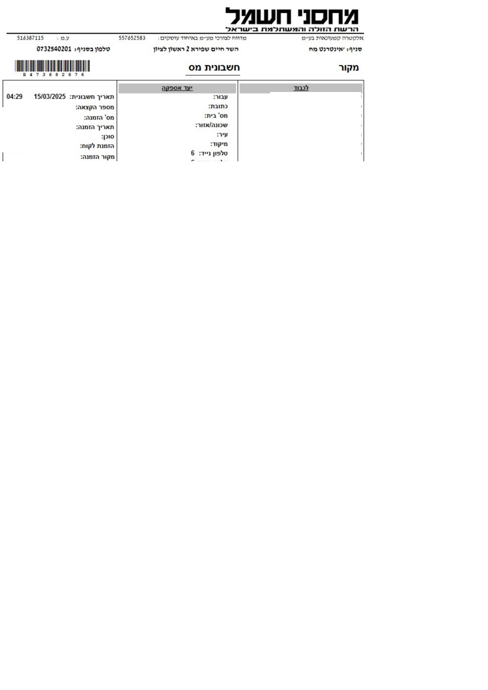 במוצ"ש ראינו שנשלחה אלינו חשבונית ממחסני חשמל בשבת בבוקר. חשבנו אולי זה מערכת אוטומטית ששולחת, אבל גילינו בחשבונית שאת החשבונית עצמה הוציאו בשבת.