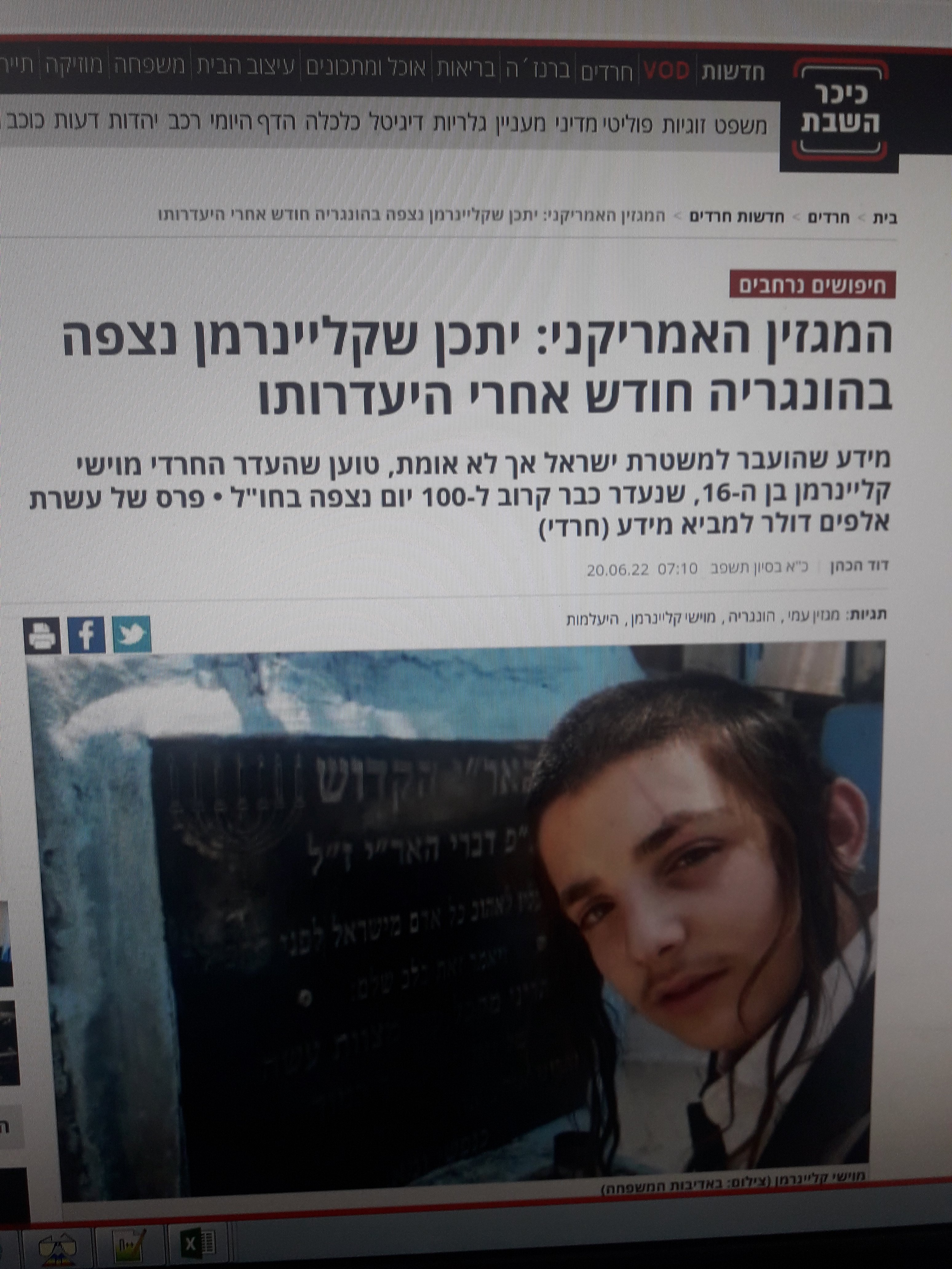 המגזין הבינלאומי Ami מפרסם כי קיבל מידע על כך שייתכן והנעדר מוישי קליינרמן נצפה בקרסטעיר, הונגריה, בתאריך 4.5​
